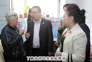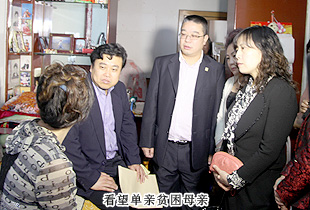 貧困母親畢艷珍,今年已經(jīng)60歲高齡,家住安順街115號(hào)2單元地下室。本人無(wú)生活來(lái)源,無(wú)勞動(dòng)能力。家中僅一個(gè)兒子,36歲,文盲,無(wú)業(yè),智力三級(jí)殘,不能正常工作生活,僅靠低保維持生計(jì),非常艱辛??粗@對(duì)老弱病殘的母子和家徒四壁的家庭,胡國(guó)安董事長(zhǎng)雙眼泛起淚花,他緊緊地握住畢艷珍的雙手,將貧困母親救助金送到她的手上,叮囑她保重身體,堅(jiān)強(qiáng)地生活下去,有政府、有愛心企業(yè)以及社會(huì)各界愛心人士,往后的生活一定會(huì)越來(lái)越好。貧困母親畢艷珍女士向胡國(guó)安董事長(zhǎng)表示衷心謝意,在你們的關(guān)懷下,我是幸福的,我要改變自己,盡自己所能,多做善事,傳遞關(guān)愛,回報(bào)社會(huì)的關(guān)心和照顧!