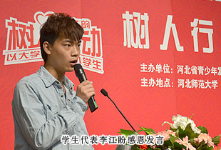 在捐贈(zèng)儀式現(xiàn)場(chǎng),河北師范大學(xué)團(tuán)委副書記姜子龍發(fā)表了講話。他在講話中表示,河北師范大學(xué)是一所具有百年歷史和光榮傳統(tǒng)的省屬重點(diǎn)大學(xué)。新中國(guó)成立以來(lái),學(xué)校共為國(guó)家培養(yǎng)了20余萬(wàn)名專業(yè)人才。今天,綠之韻集團(tuán)積極承擔(dān)社會(huì)責(zé)任,投身公益慈善,不遠(yuǎn)千里為我校貧困學(xué)子捐款捐物,對(duì)此深表感謝。希望學(xué)校廣大師生要心存感激,感激綠之韻和所有關(guān)心、幫助過(guò)你們的人,抓住機(jī)會(huì)努力學(xué)習(xí),把自己的青春、智慧和力量投入到祖國(guó)最最需要的地方去,努力將書本中學(xué)到的知識(shí)應(yīng)用到實(shí)踐中去,并在實(shí)踐中學(xué)習(xí)、在實(shí)踐中成長(zhǎng),用自己的實(shí)際行動(dòng)為國(guó)家的發(fā)展作出貢獻(xiàn),服務(wù)社會(huì),回報(bào)母校。