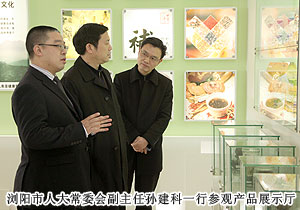 2013年1月25日上午,瀏陽市人大常委會副主任孫建科、瀏陽市人大常委會秘書長唐林軍一行蒞臨綠之韻集團(tuán)考察指導(dǎo)工作,胡國安董事長全程陪同考察組參觀了綠之韻集團(tuán)總部。