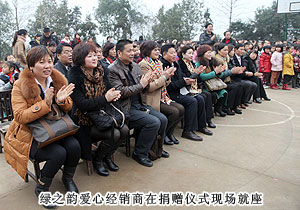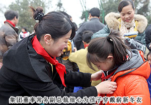 隨后,綠之韻集團(tuán)董事、常務(wù)副總裁勞嘉和綠之韻20名愛心經(jīng)銷商、愛心慈善大使一起為貧困學(xué)生們穿上嶄新的冬衣、發(fā)放學(xué)習(xí)用品。盡管操場上寒風(fēng)簌簌,可領(lǐng)取到滿載著愛心的嶄新冬衣后,孩子們每個(gè)人的臉上都綻放出著歡樂和幸福的笑容。綠之韻濃縮著溫情的冬衣帶給莘莘學(xué)子的不只是暖意,在這樣一個(gè)充滿著奉獻(xiàn)與感恩的冬天,更多的愛心正在萌發(fā)、生長和茁壯。