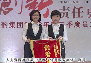 豐富的集體活動,不但充實了員工的業(yè)余生活,給綠之韻人帶來了歡樂、健康與正能量,更增強了綠之韻團隊的凝聚力與戰(zhàn)斗力。羽毛球比賽已經(jīng)成為綠之韻的經(jīng)典傳統(tǒng)活動,綠之韻集團第五屆羽毛球賽經(jīng)過激烈的角逐圓滿的落下帷幕。會上,綠之韻集團董事常務副總裁勞嘉為獲得冠亞季軍的運動健兒和優(yōu)秀集體頒獎。敢于拼搏、決不放棄、力拼到底的精神,是綠之韻人的賽場精神,更是綠之韻人的工作精神。為了市場精英能毫無后顧之憂的在一線沖鋒陷陣、開疆拓土,后勤人員勤勤懇懇、兢兢業(yè)業(yè)用心服務。來自財務部的周瑛、結(jié)算中心的章珍、業(yè)務服務部的楊婷被評為2012年第三季度服務明星,人力資源部被評為2012年第三季度優(yōu)秀服務集體。會上,綠之韻執(zhí)行總經(jīng)理龔振為服務明星頒獎。