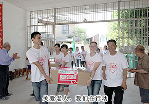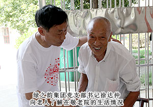 2012年8月3日上午,綠之韻黨支部又?jǐn)y手瀏陽市洞陽鎮(zhèn)政府舉辦了主題為“黨旗的溫暖”的敬老院慰問活動(dòng),綠之韻集團(tuán)董事常務(wù)副總裁勞嘉、黨支部書記許達(dá)仲帶領(lǐng)20名綠之韻黨團(tuán)員代表、綠之韻愛心志愿者來到洞陽鎮(zhèn)敬老院看望孤寡老人,為老人們送上愛心物資和關(guān)懷。