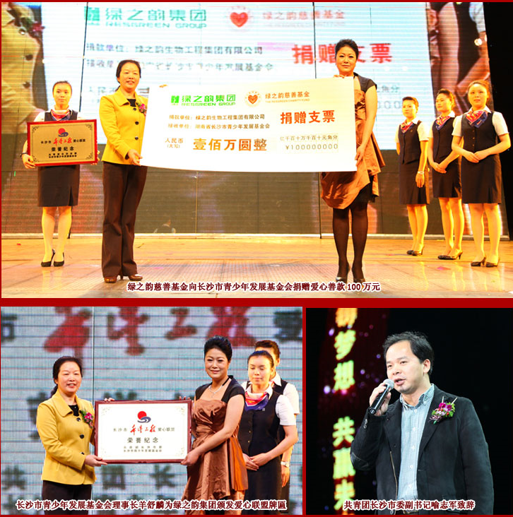 責(zé)任,一個(gè)在綠之韻永不褪色的話題。秉承關(guān)愛(ài)生命,回饋社會(huì)的理念,綠之韻將公益慈善作為事業(yè),作為文化,作為發(fā)展路上不可或缺的部分。八年公益路,百年愛(ài)心行,綠之韻用拳拳愛(ài)心溫暖了許許多多需要幫助的人。年會(huì)現(xiàn)場(chǎng),綠之韻集團(tuán)董事常務(wù)副總裁勞嘉代表慈善基金向長(zhǎng)沙市青少年發(fā)展基金會(huì)捐贈(zèng)愛(ài)心善款100萬(wàn)元,長(zhǎng)沙市青少年發(fā)展基金會(huì)理事長(zhǎng)羊舒麟女士接受捐贈(zèng),并向綠之韻慈善基金頒發(fā)“愛(ài)心聯(lián)盟”牌匾。這是一次凝聚了萬(wàn)千綠之韻經(jīng)銷商濃濃愛(ài)心的傳遞,從綠之韻“樹(shù)人行動(dòng)”援助對(duì)象、來(lái)自湖南省第一師范大學(xué)李花同學(xué)的分享中就不難感受,那份綠色的愛(ài)正在蔓延,向社會(huì)不斷地傳遞光明與溫暖。