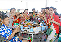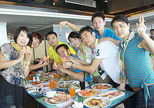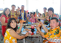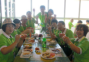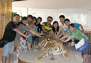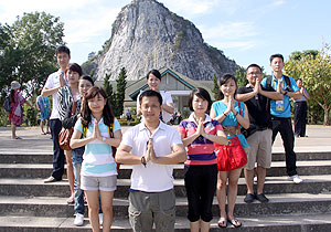 泰國是“千佛之國”,全國大大小小的廟宇有30000多座,95%的人都是非常虔誠的佛教徒,在這個文明古國,泰國人民的真誠、樸實、憨厚,給世界游客留下了深刻的印象?;锇閭円踩豚l(xiāng)隨俗,向?qū)в螌W(xué)起了泰國話,“薩瓦迪卡”成為了伙伴們彼此問候的口頭禪。