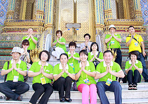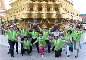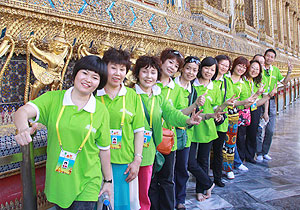 優(yōu)美迷人的亞熱帶風(fēng)光、廣博的佛教文化、獨有的民間風(fēng)俗,使泰國蜚聲海外,吸引著世界各地的游客觀光旅游,這里古老的寺廟香火旺盛,獨特的民族文化妖嬈萬分。每一年,都會有綠之韻精英踏上這片熱土,接過夢想的接力棒,向世界展示綠之韻的風(fēng)采……2011年11月19日—24日,在綠之韻集團總裁助理兼企劃教育總監(jiān)何健的帶領(lǐng)下,近100名綠之韻精英與員工跨上了浪漫的泰國之旅。