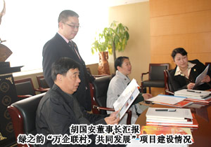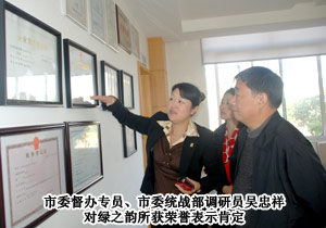 2011年11月23日,長沙市委統(tǒng)戰(zhàn)部常務副部長劉映群,市委督辦專員、市委統(tǒng)戰(zhàn)部調(diào)研員吳忠祥一行蒞臨綠之韻集團考察調(diào)研,就綠之韻“萬企聯(lián)村,共同發(fā)展”省級優(yōu)秀示范項目建設進行工作指導,綠之韻集團董事長胡國安、董事常務副總裁勞嘉陪同考察。