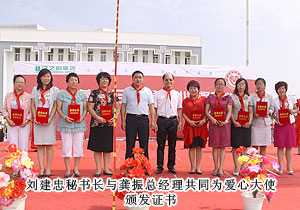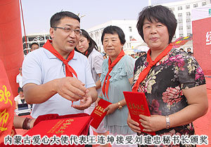 胡國安董事長向內(nèi)蒙古自治區(qū)青基會秘書長劉建忠遞交二十萬捐贈支票,并接受希望工程牌匾。劉建忠秘書長發(fā)表講話,向勇于承擔社會責任的綠之韻集團和全體營銷精英致上誠摯敬意。四子王旗常委、常務(wù)副旗長蔚代青與胡國安董事長共同為希望小學揭牌,并向胡國安董事長頒發(fā)榮譽市民證書。青基會秘書長劉建忠和執(zhí)行總經(jīng)理龔振給愛心經(jīng)銷商頒發(fā)證書,整個活動現(xiàn)場人潮洶涌,彌漫著感恩與關(guān)愛,孩子們精彩的節(jié)目表演將揭牌儀式活動推向了高潮,現(xiàn)場所有精英心懷感動,愿意盡自己的能力獻出更多關(guān)愛和溫暖。龔總在致辭中說:在綠之韻八年的發(fā)展中,綠之韻慈善基金在教育、幫扶、救災、助學等方面作出的公益事業(yè)投入累計已近2000萬元,是每一位愛心綠之韻精英的點滴匯聚才有了公司萬涓成海的善舉。