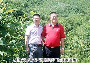 2011年6月22日,綠之韻集團(tuán)胡國安董事長(zhǎng)在綠之韻湖南迪博制藥生產(chǎn)廠廠長(zhǎng)譚雪軍、董事長(zhǎng)助理戴曉彥等陪同下,親赴綠之韻益陽中藥材基地考察。胡國安董事長(zhǎng)一行深入林間山地,實(shí)地察看了苗圃生長(zhǎng)情況,并向基地負(fù)責(zé)人詳細(xì)了解了基地建設(shè)進(jìn)程。