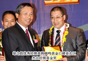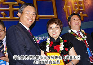 2011年6月13日,第七屆世界華人直銷大會金口碑頒獎盛典在印尼巴厘島隆重開幕。金口碑獎被譽為直銷行業(yè)的奧斯卡,代表了全球直銷人的至高榮譽。至今為止,金口碑頒獎盛典已成功舉辦六屆,造就了一批在直銷領域杰出的代表人物,同時也整合了一批具有創(chuàng)新精神和典范作用的精選案例,傳承發(fā)揚金口碑精神。綠之韻集團董事常務副總裁勞嘉、綠之韻國際集團東南亞股份有限公司運營副總裁李繼前、綠之韻沙棘產業(yè)事業(yè)部總裁王鐵柱、副總裁廖磊以及綠之韻優(yōu)秀高級經銷商受邀出席此次盛會。綠之韻集團榮獲十大最具品牌價值直銷企業(yè);綠之韻華興、匯誠系統(tǒng)榮獲卓越系統(tǒng)獎。綠之韻優(yōu)秀經銷商谷方彤、韓曉鳴獲金口碑亞太區(qū)杰出經銷商金獎,綠之韻沙棘產業(yè)事業(yè)部沙棘系列產品獲十佳名牌產品。