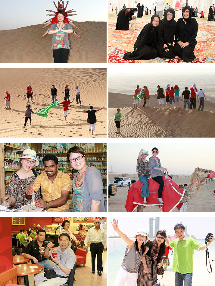 迪拜是奢華的代名詞,創(chuàng)造著許多的“世界之最”。20世紀(jì)50年代,它還是阿拉伯灣一個樸素的海濱小鎮(zhèn),到了90年代以后,鱗次櫛比的摩天大樓在霍爾河畔奇跡般地崛起,成為全世界一個具有神奇吸引力的旅游寶地。2011年5月19日—23日,綠之韻精英首屆相約迪拜之旅浪漫演繹。50多名以頑強(qiáng)拼搏精神書寫人生奇跡的綠之韻營銷伙伴踏上了精彩紛呈的“逐夢之旅”。在漫漫沙漠中騎著駱駝追尋人生夢想,在沙柔水凈的海灘上享受陽光的撫摸,在塵埃下的村落聽古老的風(fēng)塔述說愛情神話,在金光耀眼的黃金市場揮灑瘋狂購物的快感,在七星級的帆船酒店盡享尊貴服務(wù)……這就是迪拜,一半是海洋,一半是沙漠的夢幻之地,一個用財富和奢華堆砌的神話之都。