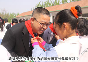 揭牌儀式上,惠民梁家小學的學生們向出席儀式的綠之韻集團愛心人士敬獻了紅領巾。綠之韻集團董事長胡國安特意從湖南趕來參加揭牌儀式,他激動地說:企業(yè)做大了就是屬于社會,屬于國家的,“關愛生命,回報社會”是綠之韻使命,綠之韻惠民梁家希望小學已經(jīng)是綠之韻捐贈的第七所希望小學,捐贈38所綠之韻希望小學是全體綠之韻人心中的夙愿。我沒有別的期望,就想以實際行動,以自身點點滴滴的實踐,帶動更多的中國優(yōu)秀企業(yè)一起參與承擔社會責任,共同推動社會責任發(fā)展。希望孩子們好好學習,有一技之長,將來為祖國作出更大的貢獻。”