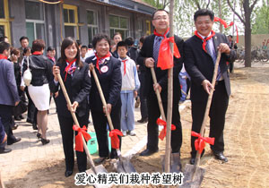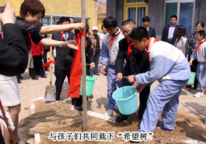 揭牌儀式結(jié)束后,胡國安先生與綠之韻愛心大使在劉可明校長的帶領下一起參觀了惠民小學的教學環(huán)境,并植下了六棵“希望樹”,希望孩子們就像青青樹苗一樣,充滿生機與朝氣,努力學習,成為國家的棟梁,將來更好地建設家鄉(xiāng)。