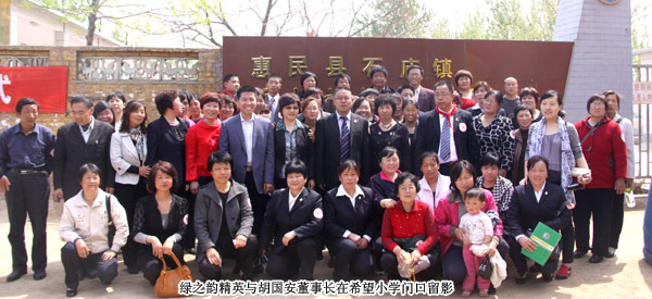 2011年4月29日,由山東省青少年發(fā)展基金會牽頭、綠之韻集團出資建設的“綠之韻惠民梁家希望小學”在“孫子故里”山東惠民縣揭牌成立。山東省青年少發(fā)展基金會副秘書長王太麗、共青團濱州市委書記張志華、惠民縣人大常委會副主任張秀葵等政府領導出席揭牌儀式。綠之韻集團胡國安董事長、綠之韻市場營銷管理中心總經(jīng)理劉彥明、綠之韻慈善基金總執(zhí)行戴曉彥、山東分公司經(jīng)理梁涌及綠之韻山東地區(qū)愛心經(jīng)銷商共同為愛傳承,為孩子們送上人間四月天的融融暖意。