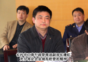 湖南省工商行政管理局經(jīng)檢總隊(duì)副總隊(duì)長(zhǎng)肖向陽(yáng)、長(zhǎng)沙市工商行政管理局副局長(zhǎng)潘虹也分別站在綠之韻集團(tuán)總部所轄監(jiān)管部門(mén)的立場(chǎng),將綠之韻獲得直銷(xiāo)牌照以及八年發(fā)展過(guò)程中為創(chuàng)業(yè)就業(yè)和稅收等方面作出的貢獻(xiàn)向考察組作了講解,并號(hào)召大家響應(yīng)湖南省工商行政管理局劉國(guó)湘局長(zhǎng)“以扶為重,以發(fā)展為先” 的號(hào)召,在監(jiān)管過(guò)程中做好企業(yè)服務(wù)工作。