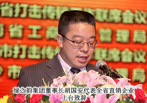 在這個(gè)莊嚴(yán)而隆重的舞臺(tái)上,以綠之韻集團(tuán)董事長(zhǎng)胡國(guó)安等為代表的直銷企業(yè)負(fù)責(zé)人向長(zhǎng)沙市工商行政管理局黨組書記、局長(zhǎng)陳躍文鄭重遞交守法經(jīng)營(yíng)承諾書,寓示著各直銷企業(yè)嚴(yán)格自律、共同維護(hù)直銷秩序、堅(jiān)決抵制傳銷的決心。胡國(guó)安董事長(zhǎng)作為行業(yè)企業(yè)代表發(fā)言,他表示,作為一名企業(yè)公民,綠之韻一定遵循行業(yè)自律的市場(chǎng)規(guī)則,謀求與各直銷企業(yè)共同和諧發(fā)展,同時(shí),作為一名企業(yè)公民,綠之韻也將在企業(yè)治理和道德價(jià)值、企業(yè)對(duì)人的責(zé)任、企業(yè)對(duì)環(huán)境的企業(yè)、企業(yè)發(fā)展中對(duì)社會(huì)的責(zé)任與貢獻(xiàn)等四個(gè)方面承擔(dān)起責(zé)任,認(rèn)真學(xué)習(xí)貫徹兩個(gè)條例,嚴(yán)格遵守相關(guān)法律法規(guī),與傳銷劃清界限,以民族直銷企業(yè)為已任,與各直銷企業(yè)及社會(huì)各界朋友一起共創(chuàng)美好和諧未來。