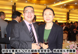 中共湖南省委書記、湖南省人大常委會(huì)主任周強(qiáng)、中共湖南省委副書記、湖南省人民政府省長(zhǎng)徐守盛、國(guó)家工商行政管理總局副局長(zhǎng)鐘攸平、中國(guó)個(gè)體勞動(dòng)者協(xié)會(huì)會(huì)長(zhǎng)甘國(guó)屏、全國(guó)工商聯(lián)副主席傅軍等近50位各級(jí)政府領(lǐng)導(dǎo)蒞臨現(xiàn)場(chǎng)。2009年度中國(guó)十大杰出湘商、綠之韻集團(tuán)董事長(zhǎng)胡國(guó)安應(yīng)邀出席,他表示:綠之韻集團(tuán)在各級(jí)政府的關(guān)心與支持下,七年時(shí)間成長(zhǎng)為中西部第一家獲牌的直銷企業(yè),有責(zé)任有義務(wù)為湖南省經(jīng)濟(jì)發(fā)展做出積極貢獻(xiàn)。將保持高度的投資熱情和敏銳的發(fā)展目光,在湘商大會(huì)這個(gè)蘊(yùn)含無(wú)限機(jī)遇的舞臺(tái)上,加強(qiáng)彼此交流和合作,與天下湘商共話湖南經(jīng)濟(jì)發(fā)展,打造湘商品牌!