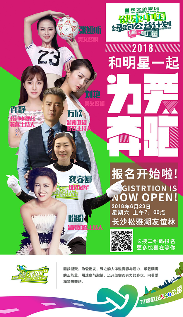 綠跑·她力量為貧困母親獻愛5.20公里2018年6月23日上午 長沙松雅湖畔健康中國綠之韻大型公益“綠跑”活動計劃即將火熱開啟美女名模 網(wǎng)紅大V這個夏天,你想遇見誰?