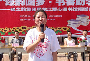 此次捐助活動上,來自各地的綠之韻優(yōu)秀經(jīng)銷商為學校師生帶來了精彩的《綠之韻戰(zhàn)歌》表演,分公司經(jīng)理孫鵬程代表公司致辭,并出席授牌儀式。綠之韻集團高級經(jīng)銷商徐華在捐贈儀式上發(fā)表感言,她表示:慈善一直是綠之韻人的一份責任,孩子是祖國的未來和希望,圖書是孩子們密不可分的伙伴,未來還將與黑龍江市場的伙伴一起以慈善活動為己任,讓更多的孩子有機會多讀書、讀好書,不能讓貧困成為孩子們成功路上的“絆腳石”。中心學校的孩子們用一支舞蹈《感恩的心》來回饋這些有充滿愛心的叔叔阿姨。