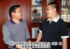 2010年5月12日上午,長沙市雨花區(qū)工商局局長王金山及副局長陳虹一行對綠之韻集團總部進行考察??疾爝^程中,王金山局長充分肯定了綠之韻集團在七年經(jīng)營過程中為長沙市經(jīng)濟發(fā)展做出的貢獻,同時表示,將大力支持湖南綠之韻保健日用品有限公司在雨花區(qū)環(huán)??萍籍a(chǎn)業(yè)園的發(fā)展,并希望通過此次考察建立長期起穩(wěn)定的合作關(guān)系,園企親密合作,開創(chuàng)共贏局面。