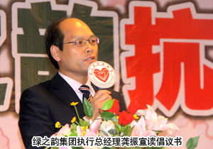 共青團長沙市委副書記彭勇在致辭中表示:感謝充滿愛心的綠之韻人,繼汶川大地震捐款及在湖南開展的樹人行動愛心助學之后,綠之韻集團再一次聯(lián)合共青團市委、青少年發(fā)展基金會,慷慨解囊,救助危難,勇于承擔社會責任的民族胸襟值得表揚和稱贊。