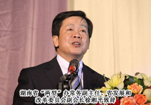 會(huì)上,湖南省“兩型”辦常務(wù)副主任、省發(fā)展和改革委員會(huì)副會(huì)長(zhǎng)徐湘平在致辭中表示,此次聯(lián)誼會(huì)不僅是各級(jí)政府對(duì)新湘商促進(jìn)湖南省經(jīng)濟(jì)發(fā)展作出貢獻(xiàn)的充分肯定,也為禮贊新湘商敢為人先、不屈不撓的進(jìn)取精神,新產(chǎn)業(yè)需要新湘商,新湘商更要有時(shí)代意識(shí),更有創(chuàng)新意識(shí),更注重產(chǎn)業(yè)與自然生態(tài)的協(xié)調(diào),更注重社會(huì)效益,省委、省政府對(duì)新湘商的崛起充滿了殷切期待。同時(shí),湖南省委常委、長(zhǎng)沙市委書記陳潤(rùn)兒發(fā)來賀辭,并鼓勵(lì)湘商再建新功、再創(chuàng)佳績(jī)。