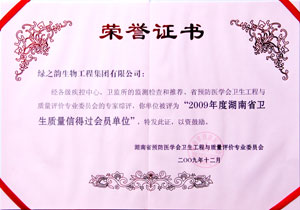 綠之韻集團(tuán)榮獲“09年度湖南省衛(wèi)生質(zhì)量信得過(guò)會(huì)員單位”
