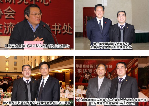 國際徽商精英年會是安徽國際徽商交流協(xié)會舉辦的一年一度的盛會,前四屆分別在北京、博鰲、無錫、合肥舉行。今年的徽商精英年會,安徽省委省政府高度重視,以“新徽商、新機遇、新發(fā)展”為主題,還特別邀請了世界杰出華商協(xié)會的優(yōu)秀成員出席交流,胡國安董事長作為“世界華商協(xié)會副會長”被邀請出席會議,并在會議期間與安徽省委領導及蕪湖市委領導進行親切會談。