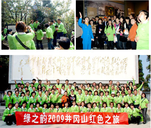 2009年10月28至30日,剛剛參加完綠之韻第二屆星級店長暨中層骨干研討會的分銷精英和總部員工代表,在綠之韻集團董事、常務副總經(jīng)理勞嘉的帶領(lǐng)下展開了為期三天的“綠之韻2009井岡山紅色之旅”。