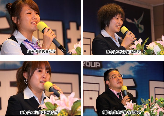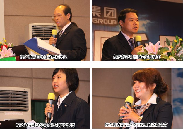 原綠之韻市部拓展部經(jīng)理諶獻(xiàn)軍榮升為綠之韻公司市場總監(jiān),在本次大會上他對未來綠之韻的市場拓展工作作出分析和展望。吉林分公司經(jīng)理劉曉桅、內(nèi)蒙古分公司經(jīng)理侯立新,以《風(fēng)雨來時路》《管理=任務(wù)、責(zé)任、實踐》為題,在員工大會做了充滿激情的述職演講。同時也向總公司傳遞著目前分公司發(fā)展呈現(xiàn)出來的喜人勢頭,讓總公司更清楚的了解到來自市場第一線的最新捷報。隨后,綠之韻公司2009年度評選出來的服務(wù)明星代表楊恬,也在大會上做了精彩發(fā)言。綠之韻集團(tuán)董事常務(wù)副總經(jīng)理勞嘉女士,在大會上指出目前公司發(fā)展中面臨的具體工作分析和規(guī)劃,強調(diào)2010年公司原有的“五心”服務(wù)將提升為“五星”服務(wù)。綠之韻集團(tuán)執(zhí)行總經(jīng)理龔振對目前綠之韻山東分公司、河北分公司、馬來西亞分公司的籌備工作進(jìn)行了部署,對未來五年的公司發(fā)展描繪出充滿激情和陽光的藍(lán)圖。綠之韻集團(tuán)董事長胡國安的總結(jié)發(fā)言將本次大會“同心、同樂、同拼搏”的主題更真切地留在了每一位員工的心中。
