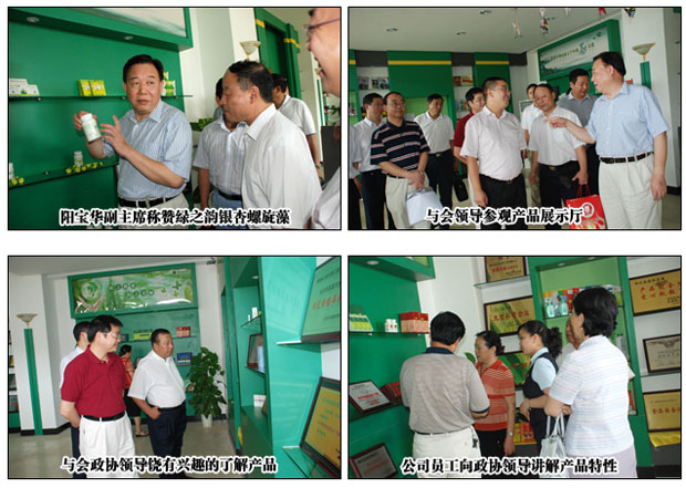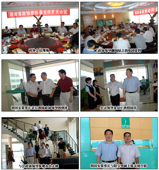 二〇〇八年七月十六日,湖南省政協(xié)經(jīng)科委主任擴(kuò)大會(huì)議在綠之韻集團(tuán)現(xiàn)代化辦公大樓五樓會(huì)議室召開。作為湖南省第十屆政協(xié)委員的胡國(guó)安董事長(zhǎng)十分重視此次向政協(xié)領(lǐng)導(dǎo)們展示綠之韻集團(tuán)面貌的機(jī)會(huì),公司上下都要求以最高規(guī)格進(jìn)行接待。前來參加會(huì)議的有:湖南省政協(xié)副主席陽寶華,湖南省政協(xié)副主席、民建省委主委龍國(guó)健,湖南省政協(xié)常委、副秘書長(zhǎng)向邦柱,經(jīng)科委副主任、湖南省商務(wù)廳廳長(zhǎng)向力力,湖南省政協(xié)常委、經(jīng)科委副主任、省國(guó)稅局局長(zhǎng)程安亭等二十多位湖南省政協(xié)領(lǐng)導(dǎo)。會(huì)議議程首先由湖南省政協(xié)委員、綠之韻集團(tuán)董事長(zhǎng)兼總裁胡國(guó)安向大家介紹了綠之韻集團(tuán)的規(guī)模和發(fā)展現(xiàn)狀。參加此次會(huì)議的政協(xié)領(lǐng)導(dǎo)中,大部分人已經(jīng)不是第一次來訪考察綠之韻,此次政協(xié)會(huì)議選址在綠之韻集團(tuán)內(nèi)部召開,也表達(dá)了湖南省政協(xié)領(lǐng)導(dǎo)們對(duì)綠之韻集團(tuán)的支持與厚愛。隨后,由湖南省政協(xié)常委、經(jīng)科委主任吳金明向大家通報(bào)了湖南省政協(xié)重點(diǎn)調(diào)研課題《以“兩型社會(huì)”建設(shè)為契機(jī),推進(jìn)湖南特色新型城市進(jìn)程》的有關(guān)情況;最后,大家對(duì)當(dāng)前經(jīng)濟(jì)熱點(diǎn)問題——“雙防”(防止經(jīng)濟(jì)增長(zhǎng)由偏快轉(zhuǎn)為過熱、防止價(jià)格由結(jié)構(gòu)性上漲演變?yōu)槊黠@通貨膨脹)展開了熱烈的談?dòng)憽?br /> 會(huì)議圓滿結(jié)束后,胡國(guó)安董事長(zhǎng)陪同與會(huì)的政協(xié)領(lǐng)導(dǎo)參觀了綠之韻標(biāo)準(zhǔn)形像店的展示廳,大家對(duì)品種繁多的綠之韻產(chǎn)品和琳瑯滿目的各項(xiàng)榮譽(yù)獎(jiǎng)牌嘖嘖稱嘆,特別是陽寶華副主席向大家大力推薦起他所熟知并一直在服用的綠之韻銀杏螺旋藻片,連聲稱贊這是保健的好產(chǎn)品。同時(shí),各位政協(xié)領(lǐng)導(dǎo)也對(duì)綠之韻集團(tuán)全力配合省政協(xié)開好這次會(huì)議所做的工作給予了高度肯定和贊揚(yáng),對(duì)胡國(guó)安董事長(zhǎng)領(lǐng)導(dǎo)下的綠之韻公司未來的發(fā)展表示關(guān)注和支持。