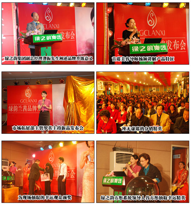 2008年3月16日,綠之韻·綠韻蘭茜品牌發(fā)布會(huì)在綠之韻集團(tuán)教育培訓(xùn)中心隆重舉行,前來(lái)參加2008綠之韻品牌建設(shè)年高峰論壇(第一場(chǎng))的綠之韻方彤系統(tǒng)的460余名精英見證了這場(chǎng)以“同一個(gè)品牌,同一個(gè)夢(mèng)想”為主題的發(fā)布會(huì)。綠之韻集團(tuán)董事長(zhǎng)兼總裁胡國(guó)安先生、董事常務(wù)副總經(jīng)理勞嘉女士、副總經(jīng)理龔振先生、總裁助理兼首席美容導(dǎo)師楊穎女士、綠之韻集團(tuán)企業(yè)戰(zhàn)略發(fā)展顧問(wèn)禹露先生出席發(fā)布儀式,并為綠韻蘭茜品牌揭幕。