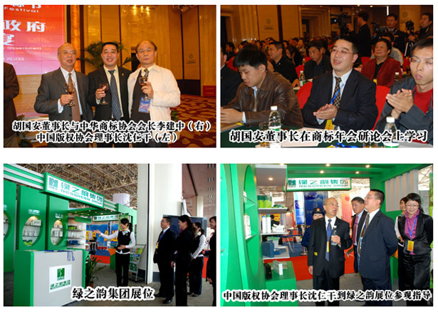 2007年11月3-6日,2007中國(guó)商標(biāo)年會(huì)在長(zhǎng)沙召開(kāi)。此次商標(biāo)節(jié)由中國(guó)工商總局批準(zhǔn),中華商標(biāo)協(xié)會(huì)和長(zhǎng)沙市人民政府共同主辦,圍繞商標(biāo)保護(hù)權(quán)益、促進(jìn)和諧發(fā)展的時(shí)代主題,通過(guò)相關(guān)論壇及廣泛的國(guó)內(nèi)外交流活動(dòng),營(yíng)造有利于保護(hù)自主品牌,促進(jìn)科學(xué)發(fā)展、共同發(fā)展、和諧發(fā)展,謀求和諧共贏的國(guó)際環(huán)境,促進(jìn)我國(guó)商標(biāo)事業(yè)的發(fā)展。本次商標(biāo)年會(huì)吸引了世界知識(shí)產(chǎn)權(quán)組織、美國(guó)專利商標(biāo)局官員,中外知名企業(yè)代表以及中國(guó)工商、海關(guān)、公安等相關(guān)領(lǐng)域卓越成就的專家、學(xué)者紛紛參加,并帶來(lái)了各自獨(dú)到見(jiàn)解。全國(guó)人大常委會(huì)副委員長(zhǎng)蔣正華、國(guó)家工商總局副局長(zhǎng)李東生、世界知識(shí)產(chǎn)權(quán)組織助理總干事王彬穎、中華商標(biāo)協(xié)會(huì)會(huì)長(zhǎng)李建中、長(zhǎng)沙市人民政府市長(zhǎng)譚仲池、湖南省工商局局長(zhǎng)張漢良、國(guó)際商標(biāo)協(xié)會(huì)前主席Anne.Chasser、歐洲內(nèi)部市場(chǎng)協(xié)調(diào)局司長(zhǎng)Beate. Schmidt以及全國(guó)各省市工商行政管理局領(lǐng)導(dǎo)以及一大批商標(biāo)專家、優(yōu)秀企業(yè)家出席了本次年會(huì),綠之韻集團(tuán)作為湖南省的重點(diǎn)品牌推薦企業(yè)也應(yīng)邀請(qǐng)參展,綠之韻集團(tuán)董事長(zhǎng)兼總裁胡國(guó)安先生和綠之韻集團(tuán)常務(wù)副總經(jīng)理勞嘉女士出席了本次商標(biāo)節(jié)年會(huì)的各項(xiàng)專題研討會(huì)和交流。