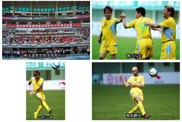2007年5月20日下午3點(diǎn),星城長沙因?yàn)檫h(yuǎn)道而來的香港明星足球隊(duì)和來自全國各地的綠之韻精英顯得更加光輝燦爛。為歡慶四周年慶典,綠之韻集團(tuán)公司與香港明星足球隊(duì)攜手的“綠之韻杯善行2007三湘助學(xué)行”香港明星足球隊(duì)(長沙)大型公益賽”在賀龍?bào)w育中心隆重進(jìn)行。這是一場由共青團(tuán)湖南省委、湖南省體育局指導(dǎo),湖南省青少年發(fā)展基金會主辦、綠之韻集團(tuán)全程支持的以助學(xué)為宗旨,以推動我省農(nóng)村青年文化扶貧計(jì)劃為主旋律的大型公益活動。湖南省人大常委會副主任王四連女士、共青團(tuán)湖南省委副書記張值恒先生為本次賽事致辭,共青團(tuán)湖南省委副書記陳雪楚、湖南省文化廳廳長金則恭、湖南省體育局副局長熊倪、湖南省青少年發(fā)展基金會理事長李克勛、中共長沙市委常委、市政府常務(wù)副市長向力力、長沙市人大副主任張菊平 、長沙市政府副市長曹亞等政府領(lǐng)導(dǎo)也親臨球賽現(xiàn)場。慈善與體育的水乳交融,明星與精英的交相輝映,讓整個賽場呈現(xiàn)出令人振奮的萬千姿彩。綠茵場上,這場在善行的大旗下,以愛心的名義舉行的公益足球賽,由湖南省青少年發(fā)展基金會理事長李克勛先生和綠之韻集團(tuán)董事長胡國安先生共同為比賽開球。香港明星足球隊(duì)與綠之韻善行聯(lián)隊(duì)的對抗精彩紛呈。譚詠麟、陳百強(qiáng)、黃日華、羅家英等明星在球場上同樣風(fēng)采照人?;盍λ纳涞淖闱?qū)氊愋?、賽事中場香港著名歌星左筠、影星羅家英和炙手可熱的超女唐笑等相繼一展美妙歌喉的精彩表演讓現(xiàn)場觀眾熱情高漲