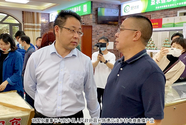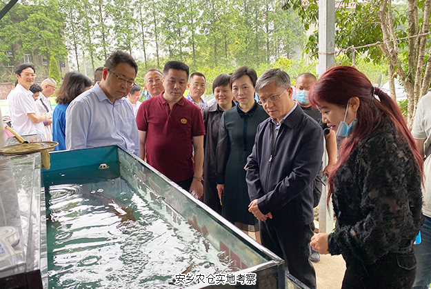 開班儀式后,胡國安董事長陪同調(diào)研組一行前往安鄉(xiāng)農(nóng)倉,考察安鄉(xiāng)農(nóng)產(chǎn)品和電商直播情況。據(jù)了解,“安鄉(xiāng)農(nóng)倉”是隸屬于安鄉(xiāng)縣的區(qū)域公用品牌,由以珊珀湖魚為代表的鮮活類系列產(chǎn)品、以黃山頭鴨為代表的鹵臘休閑類系列產(chǎn)品、以湯家崗米為代表的糧油類系列產(chǎn)品組成,這也標(biāo)志著作為農(nóng)業(yè)大縣的安鄉(xiāng)正在轉(zhuǎn)型發(fā)展、正在實行品牌發(fā)展、正在高質(zhì)量發(fā)展,正在實現(xiàn)“農(nóng)業(yè)大縣向農(nóng)業(yè)強縣”的華麗蝶變。