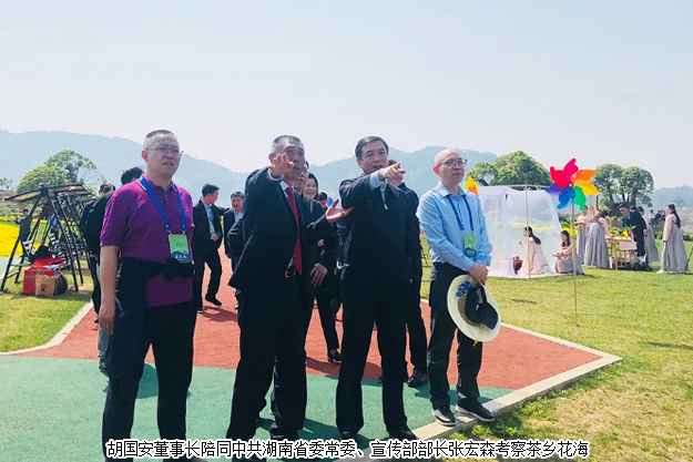開幕式上,舉行了2020年湖南省文化和旅游扶貧示范村授牌儀式,推介了湖南文旅資源、項目及旅游促銷獎勵辦法,現(xiàn)場還進行了文旅項目招商簽約儀式。胡國安董事長陪同與會的領(lǐng)導及嘉賓參與了茶鄉(xiāng)花海生態(tài)文化體驗園巡園、產(chǎn)業(yè)扶貧暨特色文旅產(chǎn)品風情街巡街、消費扶貧暨文旅特色產(chǎn)品成果展示、“24小時健康茶生活”精品旅游線路游覽、益山益水·益美益陽全域旅游卡發(fā)行儀式、“遇見安化”茶生活體驗等活動。