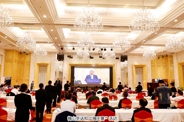 安化,古稱梅山,有十大峒蠻,為首峒主稱梅王。梅王宴,相傳是梅王待客主宴。4月27日晚在品嘗了風味獨特的“梅王宴”之后,胡國安董事長與上千名嘉賓一起,在梅山腹地安化縣城陶澍廣場參加燈火輝煌,弦歌燕舞,黑茶飄香,別具風情的“梅山茶話”活動。晚會節(jié)目以梅山非遺內(nèi)容展示為主,穿插曼妙雅致的茶藝表演,氣勢磅礴的詩歌朗誦,無人機編隊花樣飛翔,整個茶話活動場面有序而熱鬧,溫馨而熱烈,高潮迭起,掌聲不斷,為整個旅游活動營造了一種節(jié)日喜慶的氛圍。