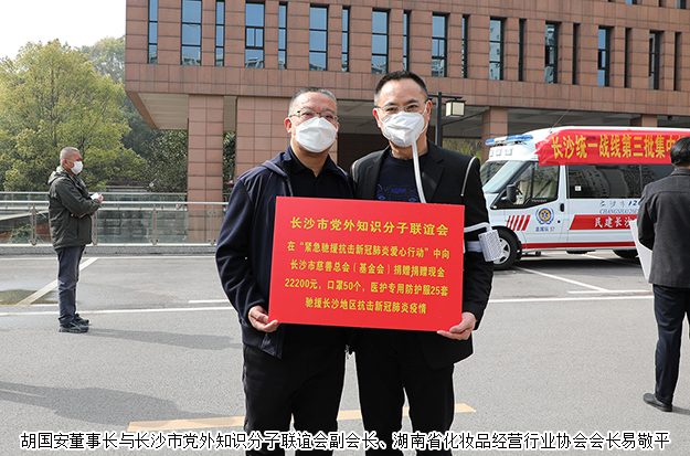 疫情無(wú)情人有情,眾志成城抗疫情。參加完捐贈(zèng)儀式,胡國(guó)安董事長(zhǎng)感觸頗深,他表示:長(zhǎng)沙統(tǒng)一戰(zhàn)線心手相連、守望相助,彰顯了統(tǒng)一戰(zhàn)線廣大成員的責(zé)任擔(dān)當(dāng)和愛(ài)國(guó)情懷。當(dāng)前,正值鞏固疫情防控的重要時(shí)刻,我代表長(zhǎng)沙市海外聯(lián)誼會(huì)廣大會(huì)員及會(huì)員企業(yè)鄭重承諾,我們將充分發(fā)揮界別資源優(yōu)勢(shì),有人出人、有力出力、有錢(qián)出錢(qián),通過(guò)多種方式用實(shí)際行動(dòng)支持奮戰(zhàn)在一線的廣大醫(yī)護(hù)人員和基層工作者。圍繞疫情防控與恢復(fù)經(jīng)濟(jì)社會(huì)正常運(yùn)行的需求,我們將進(jìn)一步與社會(huì)各界人士和會(huì)員單位一起,結(jié)合自身優(yōu)勢(shì)和各行各業(yè)所長(zhǎng),為奪取疫情防控和經(jīng)濟(jì)社會(huì)發(fā)展雙勝利繼續(xù)貢獻(xiàn)智慧和力量。
