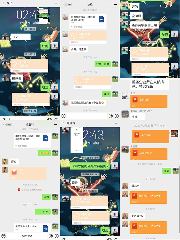 為打贏疫情防控阻擊戰(zhàn),積極響應黨中央對廣大黨員的號召,3月4日,綠之韻集團黨委組織廣大黨員同志,自愿捐款支持新冠肺炎疫情防控工作。此次捐款尊重黨員意愿,堅持自覺自愿、量力而行,不提硬性要求,不搞強迫命令,普通黨員捐款一般不超過100元,倡導黨員同志根據(jù)實際情況表達愛心。廣大黨員同志接到捐款倡議后,踴躍參與,在現(xiàn)場根據(jù)文明“一米線”原則進行捐款,在家中值守和線上輪班的黨員通過微信轉(zhuǎn)賬的方式進行捐款。