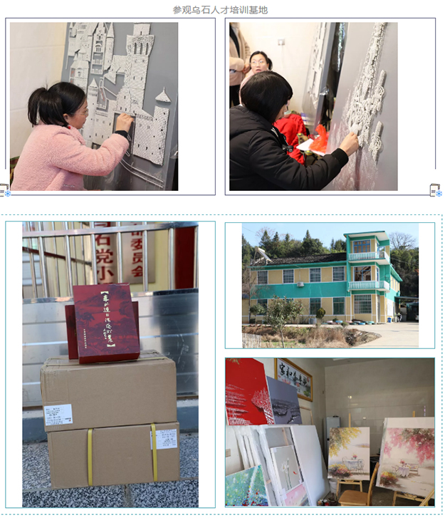 愛心志愿者一行參觀了人才培訓基地和烏石當代藝術(shù)館。在烏石當代藝術(shù)館內(nèi),陳列著的一幅幅頗具藝術(shù)感的畫作。據(jù)了解,這些畫作都是由村里人才基地培訓后的村民手工制作而成的。在人才培訓基地,村民們不僅能培養(yǎng)書法繪畫的興趣愛好、豐富業(yè)余生活,還能在畫作賣出之后獲得收益,貼補家用。了解到館內(nèi)目前書籍收藏較少,劉云書記和綠之韻愛心志愿者特地籌集了一批藝術(shù)書籍捐贈給藝術(shù)館,以豐富館藏。