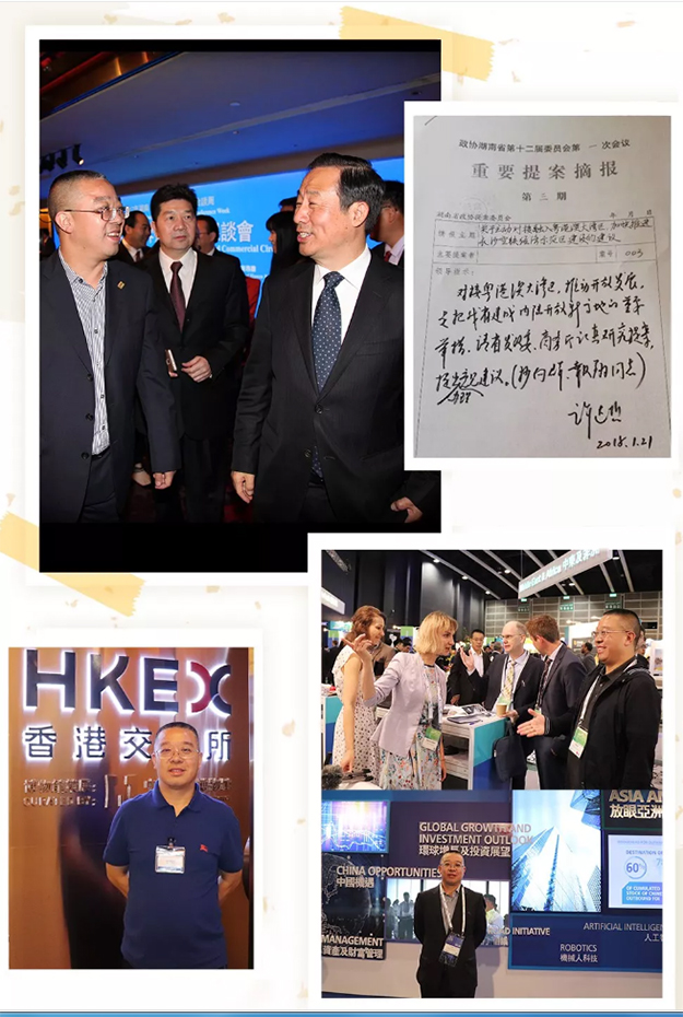 在擔任湖南省政協委員、長沙市人大代表期間,胡國安先生廣泛傾聽社情民意、積極參與各種形式的調研活動,為省市實體經濟發(fā)展獻計獻策。自履職以來,共計提交了30多份有價值的人大議案和政協提案。2010年,胡國安先生被湖南省政協授予“優(yōu)秀政協委員”光榮稱號,2014年被授予“長沙市優(yōu)秀人大代表”稱號,2016年《關于推進“互聯網+精準扶貧”的建議》提案榮獲湖南省政協“優(yōu)秀提案”表彰。2018年1月,代表致公黨湖南省委提交的《關于主動對接融入粵港粵大灣區(qū),加快推進長沙空鐵經濟示范區(qū)的建議》提案,獲湖南省人民政府省長許達哲重要批示。與此同時,胡國安先生充分發(fā)揮長沙市海外聯誼會副會長、香港長沙商會常務副會長、香港湘都同鄉(xiāng)會名譽會長作用,關心長沙經濟社會建設,積極參與香港和長沙兩地社會事務,推進湘商港商交流合作,在海外推介長沙、宣傳及協助長沙招商引資,努力為香港長沙兩地經濟的發(fā)展創(chuàng)造更多的機遇與更好的平臺。
