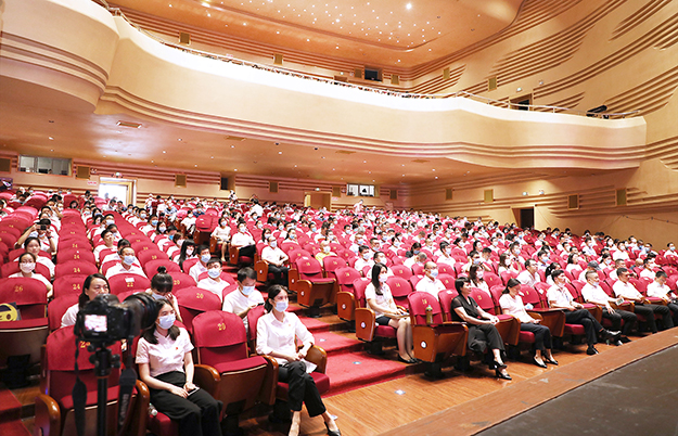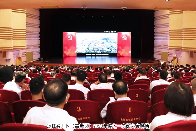 2020年6月30日,“紅心向黨·逐夢金陽”瀏陽經(jīng)開區(qū)(高新區(qū))2020年度七一表彰大會在金陽文化藝術(shù)中心舉行。瀏陽經(jīng)開區(qū)(高新區(qū))黨工委副書記、管委會主任談文昌,黨工委副書記、管委會副主任尋院豪,黨工委委員、管委會副主任何六生,黨工委委員、紀(jì)工委書記肖賽男,企業(yè)黨委專職副書記陳飛雪等領(lǐng)導(dǎo)參加會議。綠之韻集團(tuán)董事、總裁勞嘉,黨委書記劉云,黨委副書記許達(dá)仲帶領(lǐng)集團(tuán)優(yōu)秀黨員代表和新發(fā)展的中共預(yù)備黨員代表參加會議。