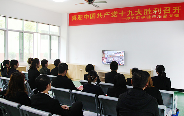 2017年10月18日,上午9時(shí),萬(wàn)眾矚目的中國(guó)共產(chǎn)黨第十九次全國(guó)代表大會(huì)(以下簡(jiǎn)稱“十九大”)在北京人民大會(huì)堂隆重開幕。綠之韻集團(tuán)保健日用品支部組織黨員職工集中收看了黨的“十九大”開幕式。綠之韻集團(tuán)副總經(jīng)理胡均安、梅其慧,綠之韻集團(tuán)黨委書記劉云,黨委副書記許達(dá)仲與黨員們共同聆聽了習(xí)近平同志代表十八屆中央委員會(huì)作的工作報(bào)告。