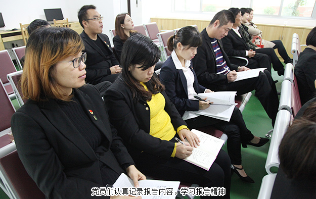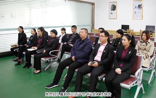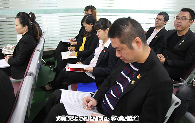 奪取新時(shí)代中國(guó)特色社會(huì)主義偉大勝利》的報(bào)告。報(bào)告中指出,黨的“十八大”以來的五年,是黨和國(guó)家發(fā)展進(jìn)程中很不平凡的五年。在這五年中,國(guó)務(wù)院國(guó)資委、廣大中央企業(yè)深入貫徹落實(shí)以習(xí)近平同志為核心的黨中央治國(guó)理政新理念新思想新戰(zhàn)略,不忘初心、砥礪奮進(jìn),各項(xiàng)事業(yè)均取得了不凡的成就。觀看過程中,黨員們聚精會(huì)神,不時(shí)在筆記本上快速記下報(bào)告中的重要語(yǔ)句和要點(diǎn),加深記憶與學(xué)習(xí)。聽到激動(dòng)之處,黨員們更是數(shù)度起身,情不自禁地鼓起了掌。