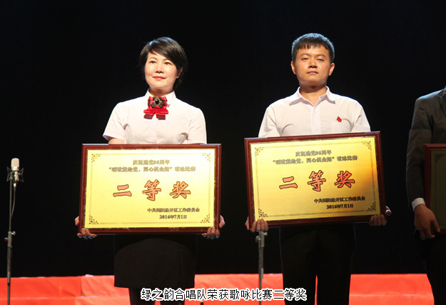 大會(huì)最令人熱血沸騰的環(huán)節(jié)是慶祝建黨95周年歌詠比賽的舉辦?!陡璩鎳?guó)》、《唱支山歌給黨聽(tīng)》、《黨啊,親愛(ài)的媽媽》等一支支弘揚(yáng)偉大祖國(guó)繁榮昌盛的主旋律在金陽(yáng)唱響。綠之韻合唱隊(duì)在集團(tuán)黨總支帶領(lǐng)下以飽滿的熱情和嘹亮的歌聲表演了《四渡赤水出奇兵》,積極進(jìn)取、奮發(fā)向上的精神風(fēng)貌感染了現(xiàn)場(chǎng)每一個(gè)人,并最終榮獲歌詠比賽二等獎(jiǎng)。