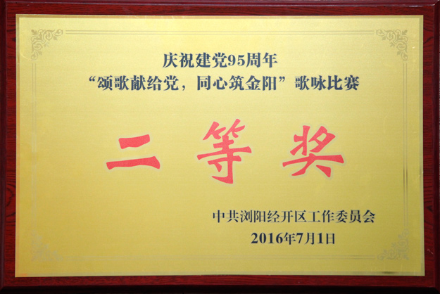2016年7月1日,瀏陽(yáng)經(jīng)開(kāi)區(qū)慶祝建黨95周年表彰大會(huì)暨合唱比賽在園區(qū)金陽(yáng)文化藝術(shù)中心隆重召開(kāi)。全體黨委領(lǐng)導(dǎo)、機(jī)關(guān)各支部、各非公經(jīng)濟(jì)黨組織以及園區(qū)各企業(yè)代表團(tuán)等參加會(huì)議。會(huì)上,綠之韻集團(tuán)黨總支部憑借出色的黨建工作再次被評(píng)為“先進(jìn)基層黨組織”, 綠之韻黨總支副書記許達(dá)仲被評(píng)為“優(yōu)秀黨務(wù)工作者”,公司員工黃姣、楊丹被評(píng)為園區(qū)“優(yōu)秀共產(chǎn)黨員”。