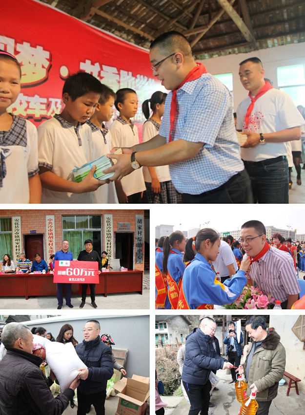 慈心厚德,善舉為民。胡國安董事長始終將雷鋒積極奉獻(xiàn)的精神踐行在個人修為和企業(yè)發(fā)展之中。截止目前,綠之韻在他的帶領(lǐng)下,已經(jīng)踴躍參與了100多項公益慈善項目,項目涉及希望學(xué)校、賑災(zāi)濟(jì)困、孤殘救助、醫(yī)療衛(wèi)生、修路飲水、社會養(yǎng)老等多個領(lǐng)域,公益足跡覆蓋全國13省60多個區(qū)縣,累計捐贈款物達(dá)7000多萬元,贏得了社會各界的好評。胡國安董事長先后被中央統(tǒng)戰(zhàn)部等五部委評為“全國優(yōu)秀中國特色社會主義事業(yè)建設(shè)者”、被中華慈善總會授予“突出貢獻(xiàn)獎”、被共青團(tuán)中央授予“希望杰出貢獻(xiàn)獎”,榮獲湖南省 “百名最美扶貧人物”、長沙市首屆“十大同心人物”等榮譽(yù)表彰?!熬珳?zhǔn)扶貧”提出五周年之際,2018年10月16日,綠之韻被全國工商聯(lián)、國務(wù)院扶貧辦評為全國“萬企幫萬村”精準(zhǔn)扶貧行動先進(jìn)民營企業(yè)。