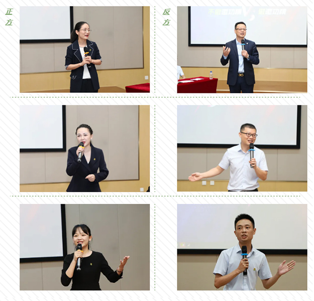 今年5-6月,綠之韻集團組織部分員工參加了“魅力講師訓(xùn)練營”演講與口才培訓(xùn)活動。經(jīng)過為期兩個月的專業(yè)訓(xùn)練,學(xué)員們成功畢業(yè)。分享匯報會伊始,這群“會說話”的年輕學(xué)員們就為大家?guī)砹艘粓鼍实霓q論賽。