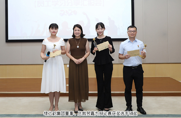 活動最后,綠之韻集團董事、總裁勞嘉講話。她首先向此次辯論賽、征文比賽中獲得優(yōu)勝的選手,以及取得省、市級人才稱號的同事們表示祝賀。感謝參賽選手們的精心準備,感謝三位導(dǎo)師的付出,感謝人力資源部細致的籌備讓在場眾人看到了一場精彩絕倫的辯論賽。師者,傳道授業(yè)解惑也。綠之韻成立至今十七年,一直有著“傳幫帶”的傳統(tǒng)。很高興看到選手們在導(dǎo)師的教導(dǎo)下都有顯著的提升。一直以來,綠之韻都大力提倡要“打造學(xué)習(xí)型企業(yè)”,這也是公司舉辦本次成果匯報會的初衷,希望員工們能夠養(yǎng)成熱愛學(xué)習(xí)的習(xí)慣,在學(xué)習(xí)中與企業(yè)、平臺一起不斷成長。員工每一次的成長和提升,都能幫助企業(yè)不斷邁進。得益于此次辯論賽,讓原本身處幕后的同事有了走到臺前的機會。不論今天結(jié)果如何,勇于站上舞臺就是成功。她相信,辯論賽帶給大家更多的是一種激勵與期望。只有擁有期望才能獲得成長。最后,勞嘉總裁向大家分享了今年高考作文題中管仲與齊桓公這個故事的感悟:人與人之間最重要的是互相成就。她希望,通過這次學(xué)習(xí)分享會,各部門要做好梳理和總結(jié),部門負責(zé)人要盡可能給予下屬更多的關(guān)懷、激勵與期望,在未來的工作與生活中,讓員工與企業(yè)一起共同成長、共同進步!