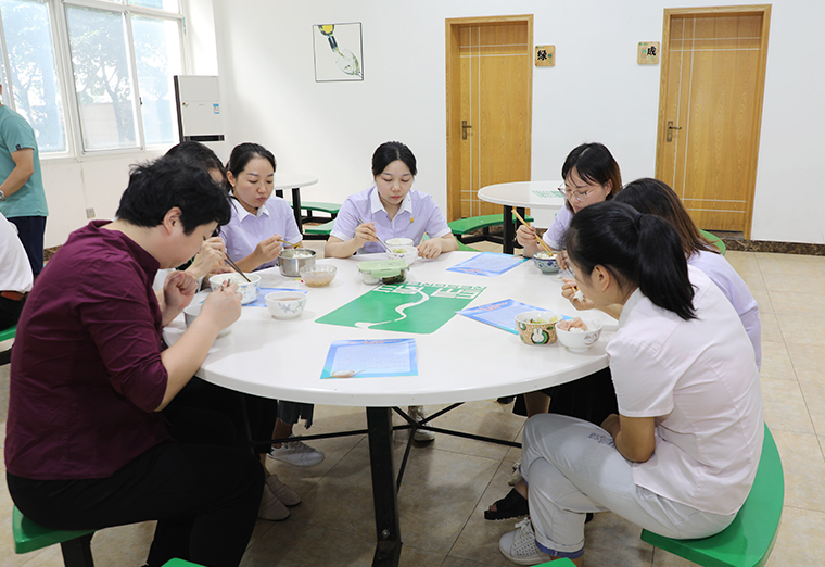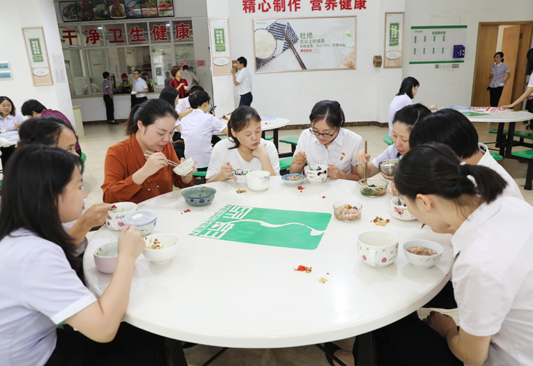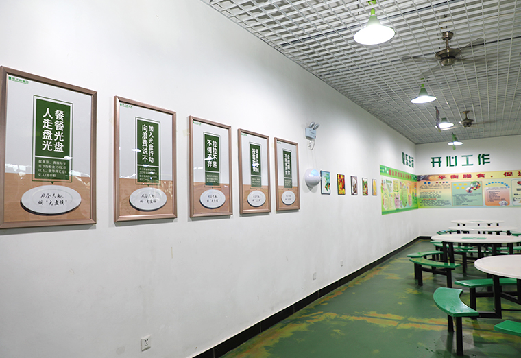 為積極響應“光盤行動”,綠之韻集團食堂在員工用餐時嚴格遵循“吃多少打多少,少量多次、按需打飯”原則,結(jié)合疫情防控工作由食堂工作人員統(tǒng)一分菜,打菜打飯先打少,不夠再加,保證吃飽不浪費。同時,員工自行攜帶碗筷進行就餐,最大程度預防減少各種疾病交叉?zhèn)鞑ァT谑程脙?nèi)部,還張貼有多張宣傳標語,時刻提醒并引導員工養(yǎng)成節(jié)約糧食、文明用餐的好習慣。
