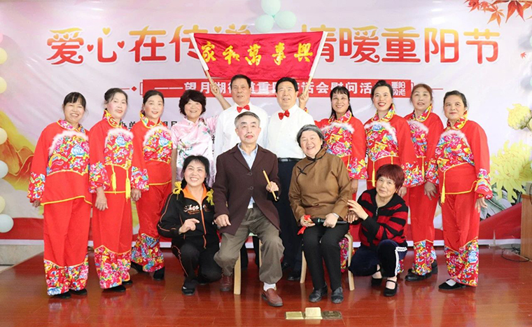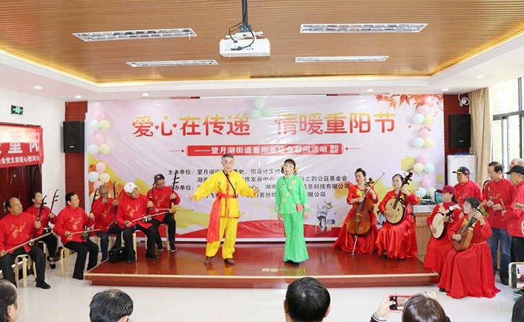 經(jīng)過前期的悉心籌劃,本次重陽節(jié)茶話會為受邀居民呈現(xiàn)了一場溫馨歡樂的舞臺盛宴:熱烈開場的《夢回乾坤灣》歌曲獨(dú)唱、輕松熱鬧的花鼓戲《劉大娘笑呵呵》、情景劇表演《百善孝為先》、風(fēng)情舞蹈《草原上升起不落的太陽》……除了慰問演出,老人們自己精心準(zhǔn)備了才藝節(jié)目,悠揚(yáng)的旋律,動人的演繹,地方味兒十足的特色演出增加了節(jié)日的幸福感。勞嘉理事長、劉云書記以及綠之韻愛心志愿者與老人們團(tuán)聚在一起觀看表演、拉家常,現(xiàn)場歌聲、掌聲、歡笑聲不斷。